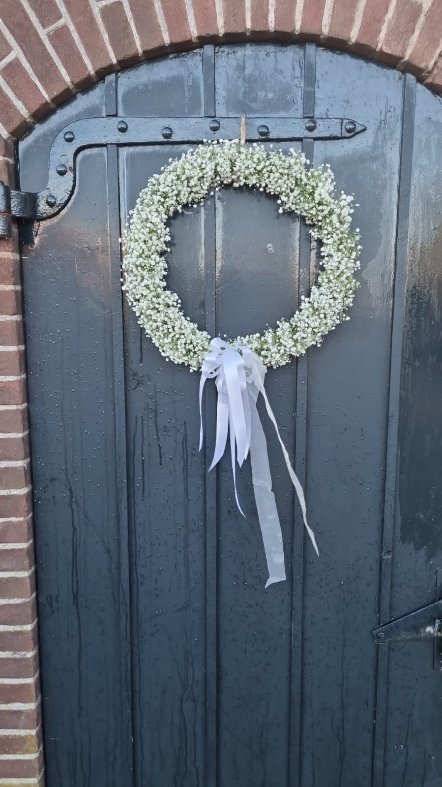 Breng natuurlijke charme in huis met deze prachtige handgemaakte gipskruidkrans, volledig gevuld met vers gipskruid.